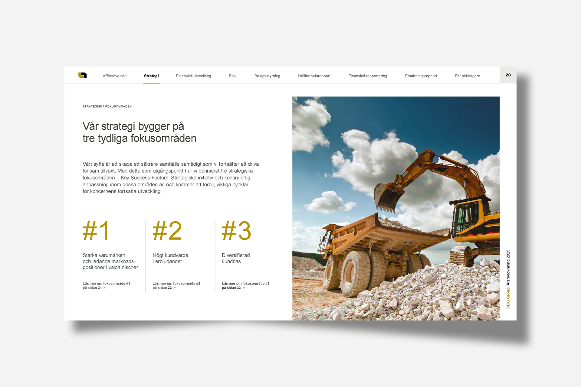 Fokus för årets redovisning låg, utöver årlig avrapportering och produktion av en visuellt tilltalande produkt, på att vidareutveckla bolagets hållbarhetsrapport för att den skulle leva upp till de europeiska standarderna för hållbarhetsrapportering (ESRS). Därutöver fanns en önskan att integrera rapportens förvaltningsberättelse och säkerställa ett tydligt informationsflöde med klara budskap grundade i bolagets mission: Vi skapar ett säkrare samhälle.