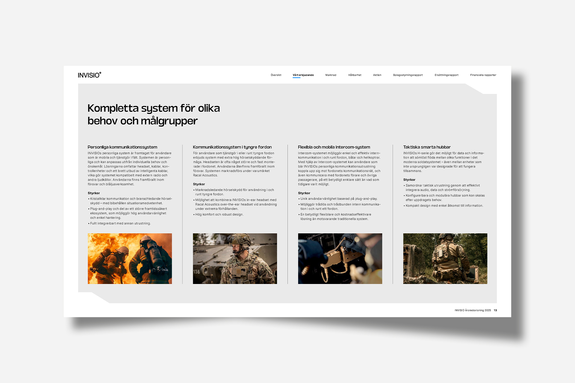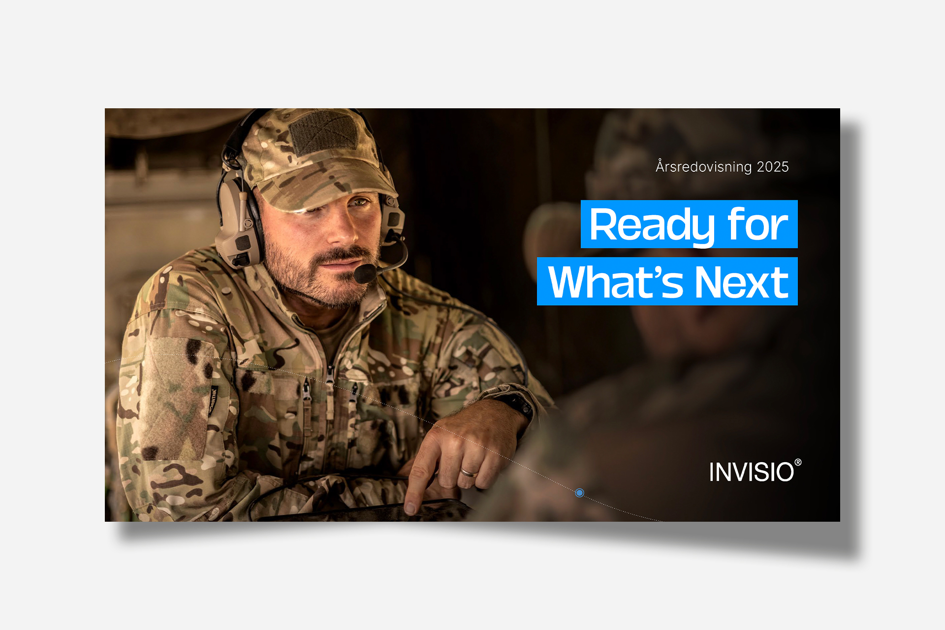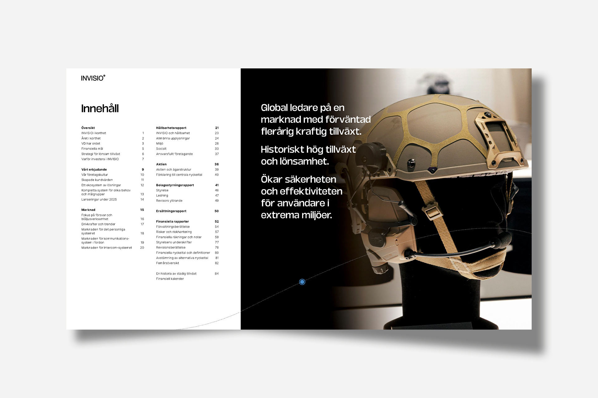 I arbetet med årsredovisningen 2025 gjordes en designuppdatering i linje med INVISIOs nya profilmanual. Årsredovisningen fick ett moderniserat visuellt uttryck och producerades i ett liggande wide-format, optimerat för digital läsning på skärm.
