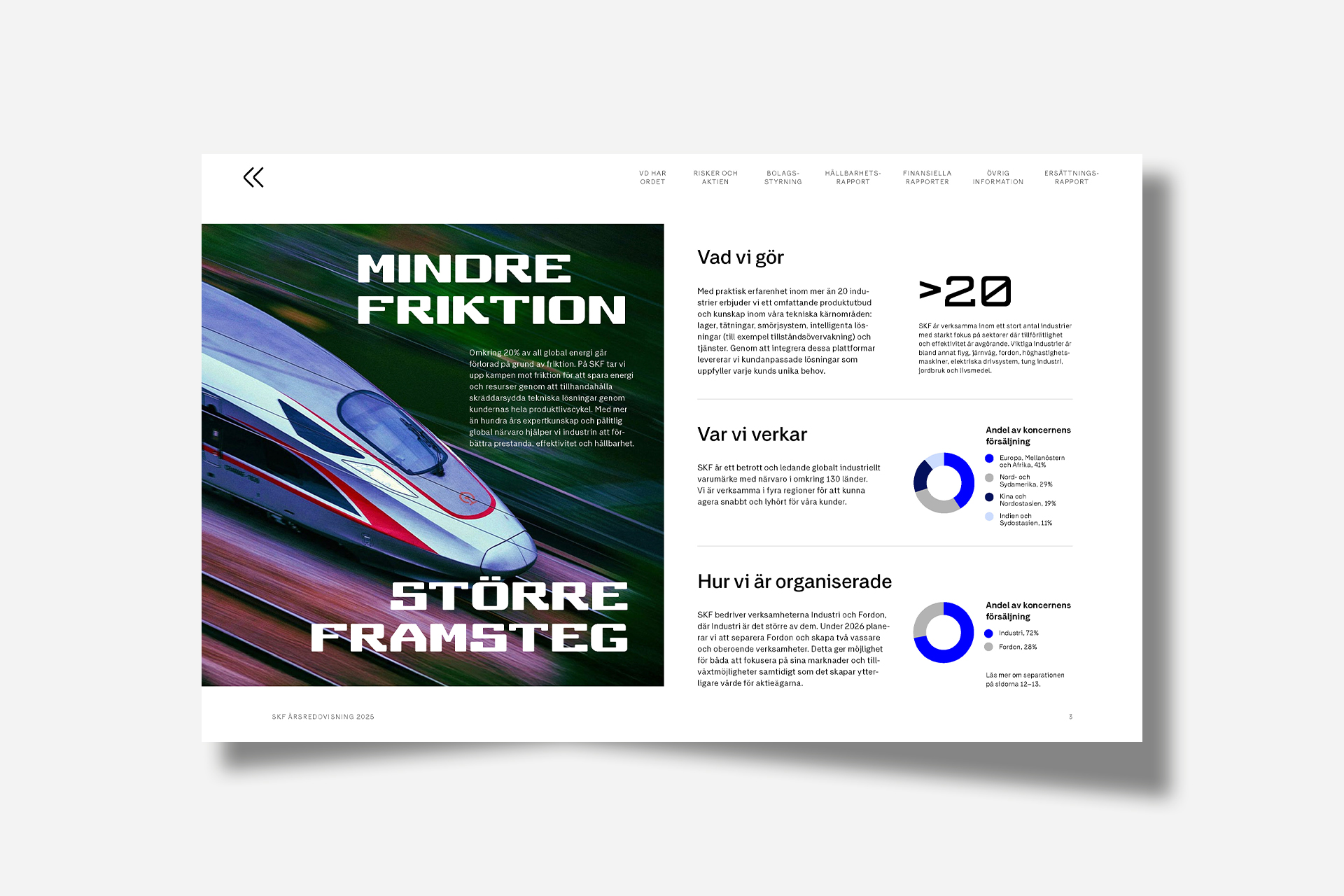 SKF är ett av industrins starkaste varumärken med medarbetare som arbetar för att få saker och ting att gå snabbare och längre, men också renare och säkrare. I bolagets års- och hållbarhetsredovisning 2025 beskriver SKF i en förenklad framvagn med utökat VD-ord, sin strategiska inriktning och pågående omvandlingen av koncernen framåt.